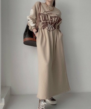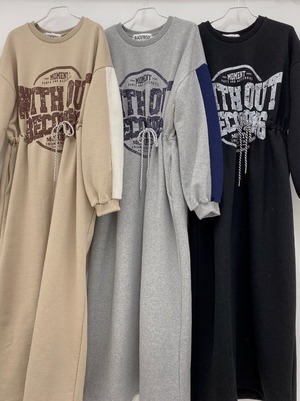【送料無料】レディース 3カラー ワンピース スウェット ロゴ プリント 長袖 ロング丈 マキシ丈 スポーティー 大人可愛い ママコーデ ママファッション 韓国 オルチャンファッション 人気 トレンド 新作 20代 30代 40代 レトロ シンプル 定番 お出かけ デート おしゃれ 通学 OL デイリー 普段着 ラフ カジュアル フェミニン ゆったり 体型カバー 着痩せ 着回し インスタ映え 春 秋 冬 CO2656