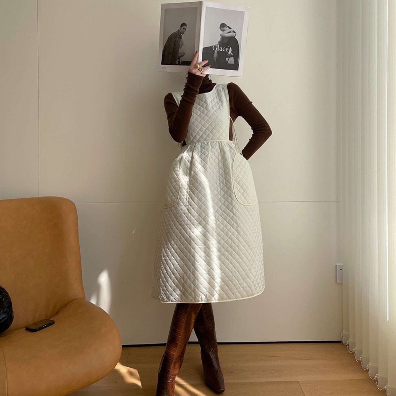 【送料無料】レディース ワンピース キルティング ミディアム丈 大きめポケット ワンピース大人可愛い ママコーデ ママファッション 韓国 オルチャンファッション 人気 トレンド 新作 20代 30代 40代 きれいめ レトロ シンプル 定番 お出かけ デート おしゃれ 通勤 通学 オフィス OL デイリー 普段着 ラフ カジュアル フェミニン シック ゆったり 体型カバー 着痩せ 着回し インスタ映え 秋 冬 CO2693