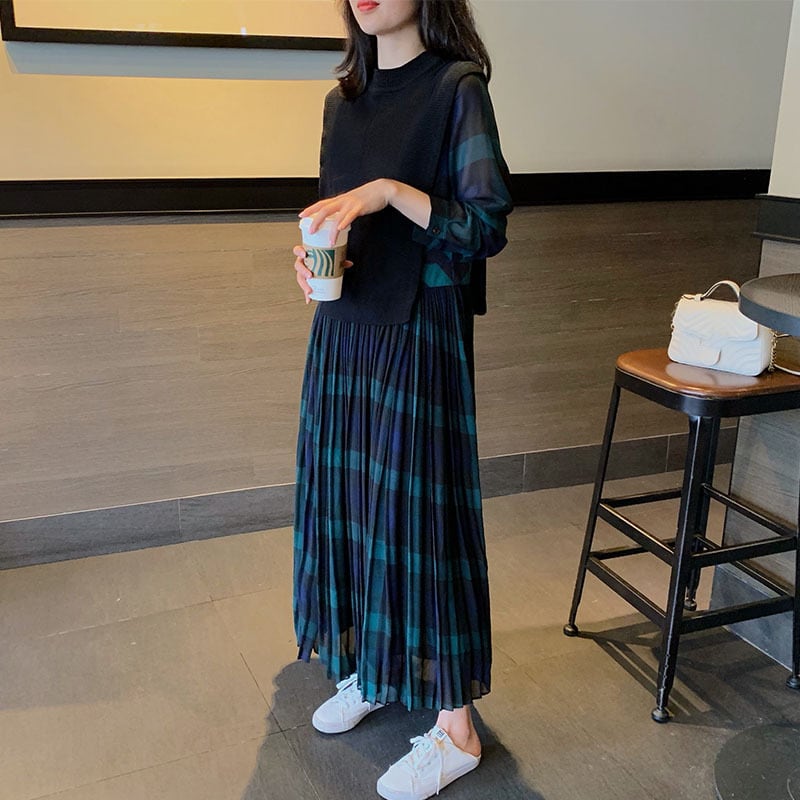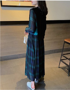 【送料無料】レディース ワンピース 異素材 レイヤード風 チェック プリーツ ロングワンピース 大人可愛い ママコーデ ママファッション 韓国 オルチャンファッション 人気 トレンド 新作 20代 30代 40代 きれいめ レトロ シンプル 定番 お出かけ デート おしゃれ 通勤 通学 オフィス OL デイリー 普段着 ラフ カジュアル フェミニン シック ゆったり 体型カバー 着痩せ 着回し インスタ映え 春 秋 冬 CO2712