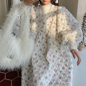 【送料無料】レディース キルティングワンピース Aライン フラワー 花柄 ボリューム袖 大人可愛い ママコーデ ママファッション 韓国 オルチャンファッション 人気 トレンド 新作 20代 30代 40代 きれいめ レトロ シンプル お出かけ デート おしゃれ 通勤 通学 オフィス OL デイリー 普段着 ラフ カジュアル フェミニン シック ゆったり 体型カバー 着痩せ 着回し インスタ映え 春 秋 冬 CO2879