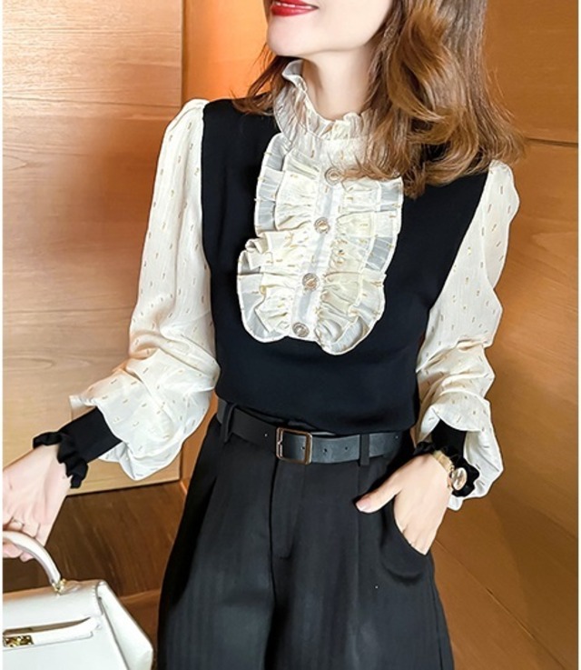 【送料無料】レディース 2カラー トップス フリル ビショップスリーブ ビジューボタン 大人可愛い ママコーデ ママファッション 韓国 オルチャンファッション 人気 トレンド 新作 20代 30代 40代 きれいめ レトロ シンプル お出かけ デート おしゃれ 通勤 通学 オフィス OL デイリー 普段着 ラフ カジュアル フェミニン シック ゆったり 体型カバー 着痩せ 着回し インスタ映え 春 秋 冬 CO2905