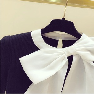 【送料無料】レディース ニット トップス リブ リボン バイカラー 長袖 大人可愛い ママコーデ ママファッション 韓国 オルチャンファッション 人気 トレンド 新作 20代 30代 40代 きれいめ レトロ シンプル お出かけ デート おしゃれ 通勤 通学 オフィス OL デイリー 普段着 ラフ カジュアル フェミニン シック ゆったり 体型カバー 着痩せ 着回し インスタ映え 秋 冬 CO2931
