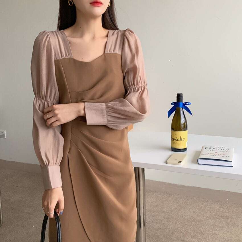 【送料無料】レディース パフスリーブ ワンピース 不規則 ロングワンピース 2カラー タック ドレープ スクエアネック 大人可愛い ママコーデ ママファッション 韓国 オルチャンファッション 人気 トレンド 新作 20代 30代 40代 きれいめ レトロ シンプル 無地 定番 お出かけ デート おしゃれ 通勤 通学 オフィス OL デイリー 普段着 ラフ カジュアル フェミニン シック ゆったり 体型カバー 着痩せ 着回し インスタ映え 秋 春 CO2730