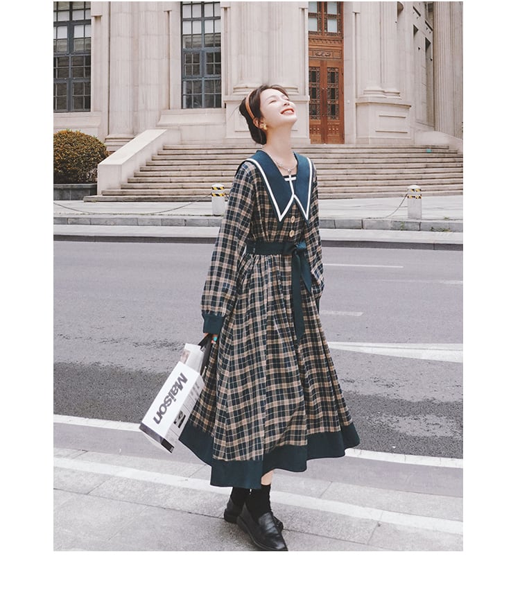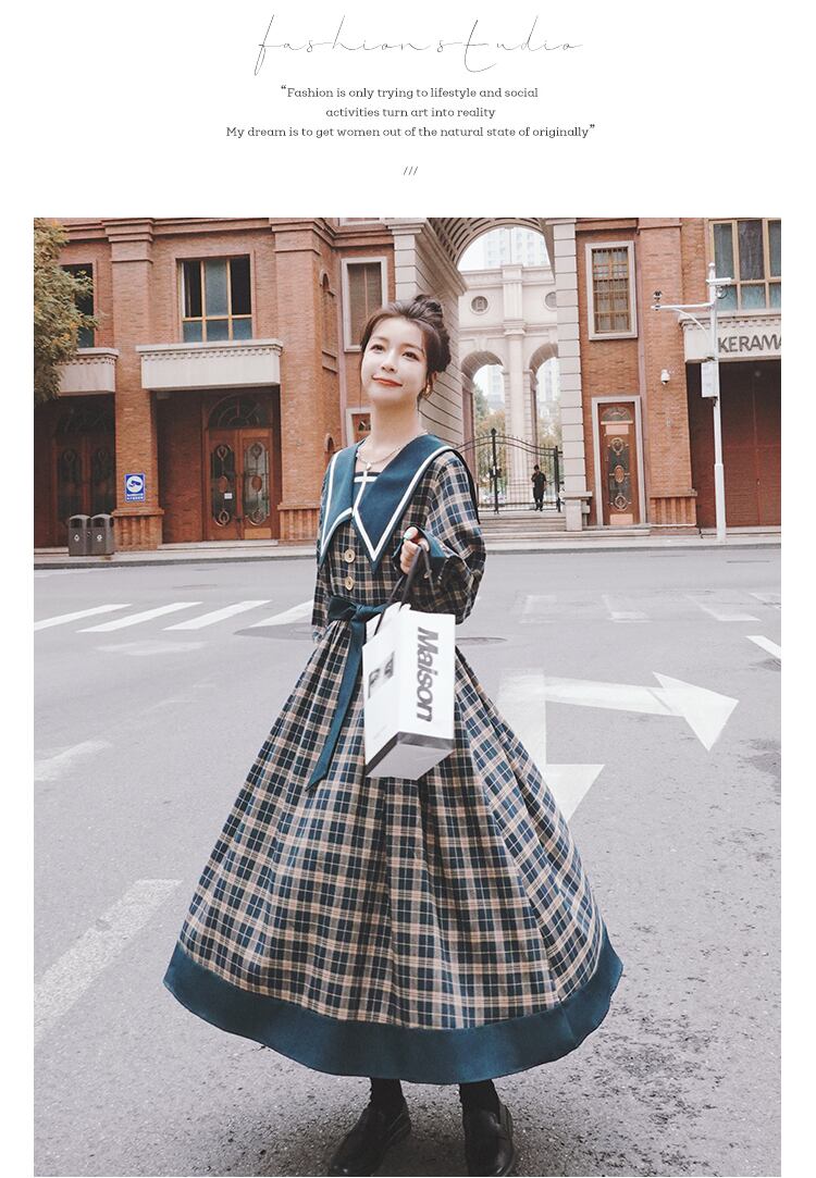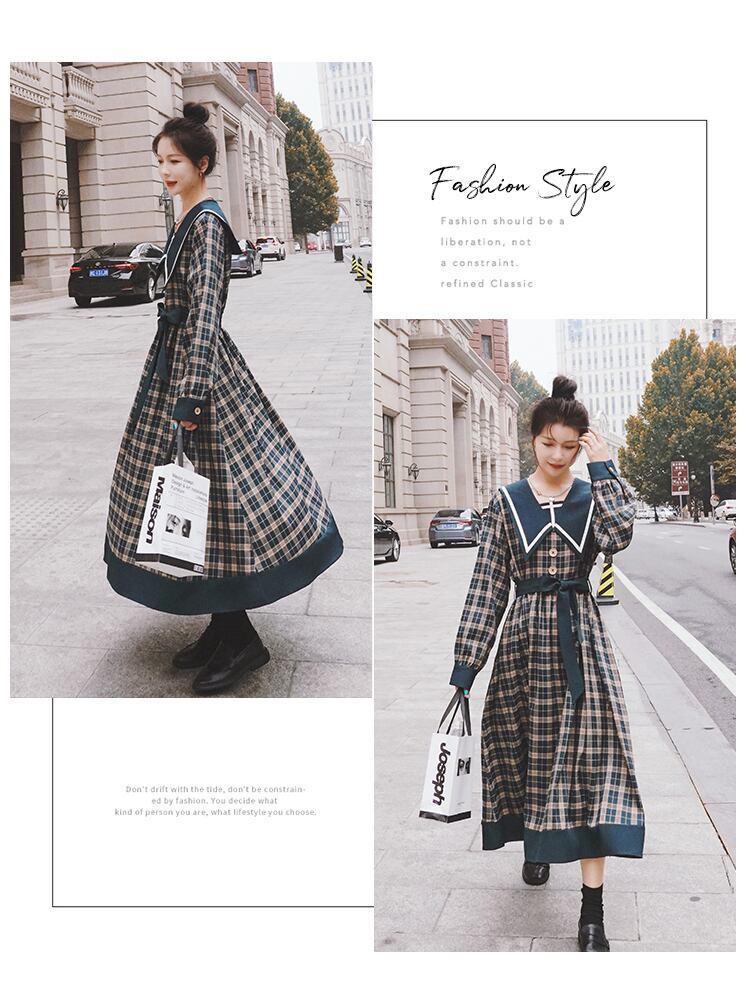 【送料無料】レディース セーラーワンピース チェック柄 ロングワンピース セーラーカラー ウエストリボン 長袖 大人可愛い ママコーデ ママファッション 韓国 オルチャンファッション 人気 トレンド 新作 20代 30代 40代 きれいめ レトロ シンプル お出かけ デート おしゃれ 通勤 通学 オフィス OL デイリー 普段着 ラフ カジュアル フェミニン シック ゆったり 体型カバー 着痩せ 着回し インスタ映え 春 秋 CO2946