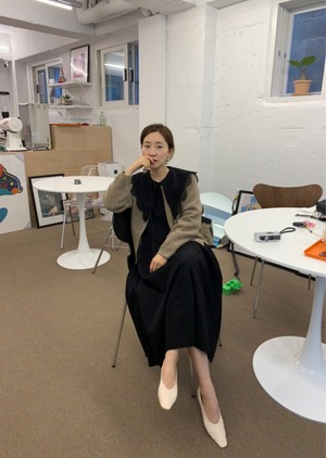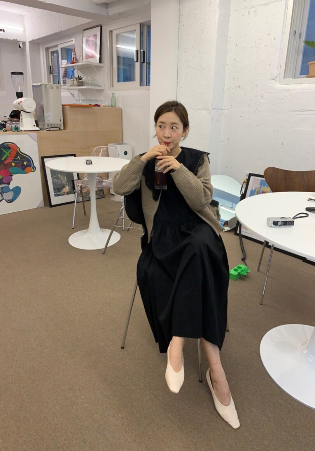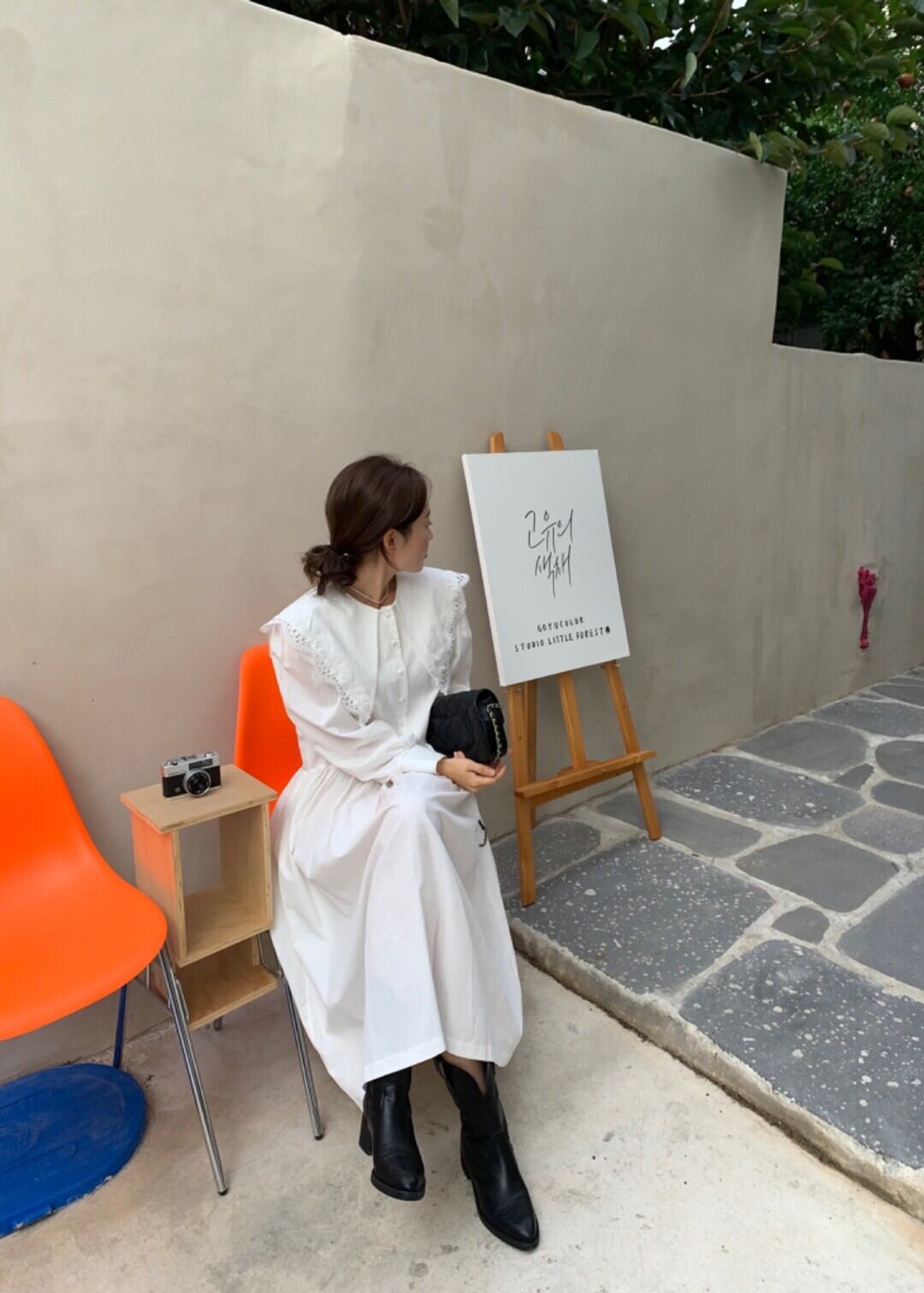 モノトーンワンピースにレースビックカラーで華やかさをプラス♪