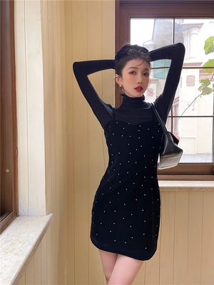 【送料無料】レディース 2点セット ハイネックトップス キャミソールワンピース ミニワンピース 長袖 キャミワンピ 大人可愛い ママコーデ ママファッション 韓国 オルチャンファッション 人気 トレンド 新作 20代 30代 40代 きれいめ レトロ シンプル お出かけ デート おしゃれ 通勤 通学 オフィス OL デイリー 普段着 ラフ カジュアル フェミニン シック ゆったり 体型カバー 着痩せ 着回し インスタ映え 秋 冬 CO2955