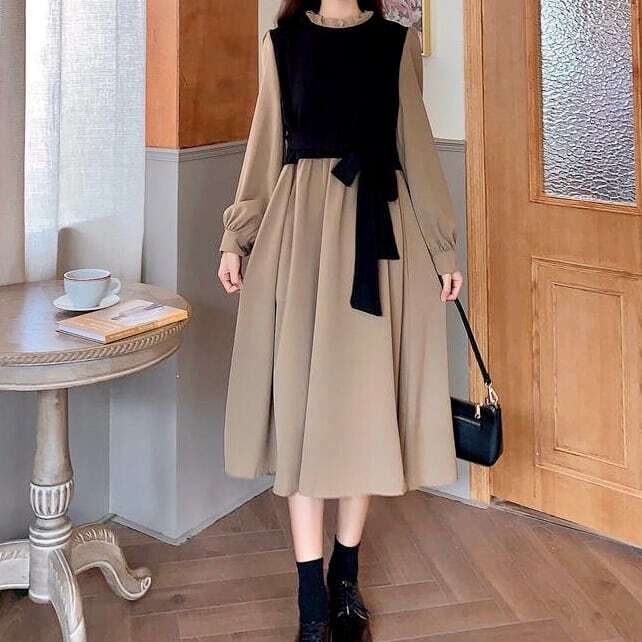 【送料無料】レディース フェイクツーピース ドッキングワンピース ウエストリボン ワンピース 大人可愛い ママコーデ ママファッション 韓国 オルチャンファッション 人気 トレンド 新作 20代 30代 40代 きれいめ レトロ シンプル 無地 定番 お出かけ デート おしゃれ 通勤 通学 オフィス OL デイリー 普段着 ラフ カジュアル フェミニン シック ゆったり 体型カバー 着痩せ 着回し インスタ映え 秋 春 CO2757