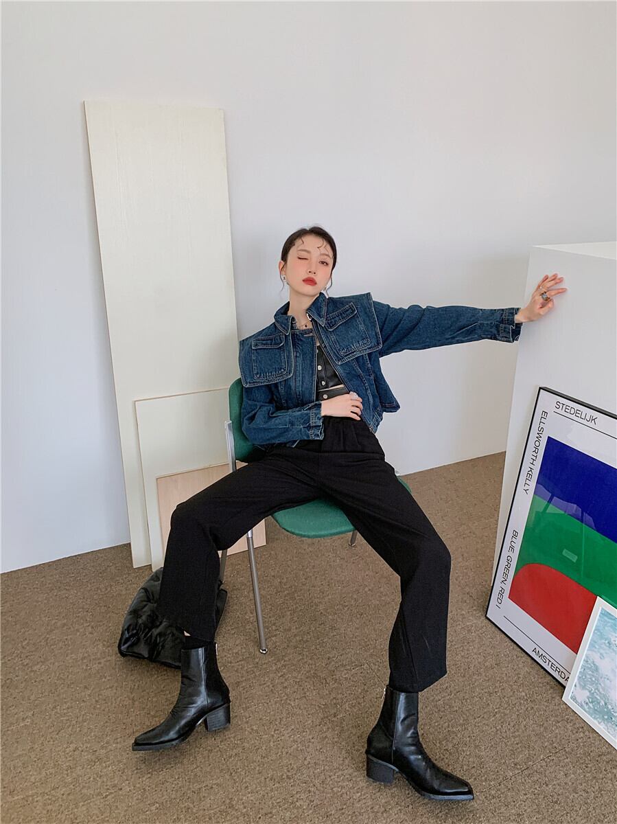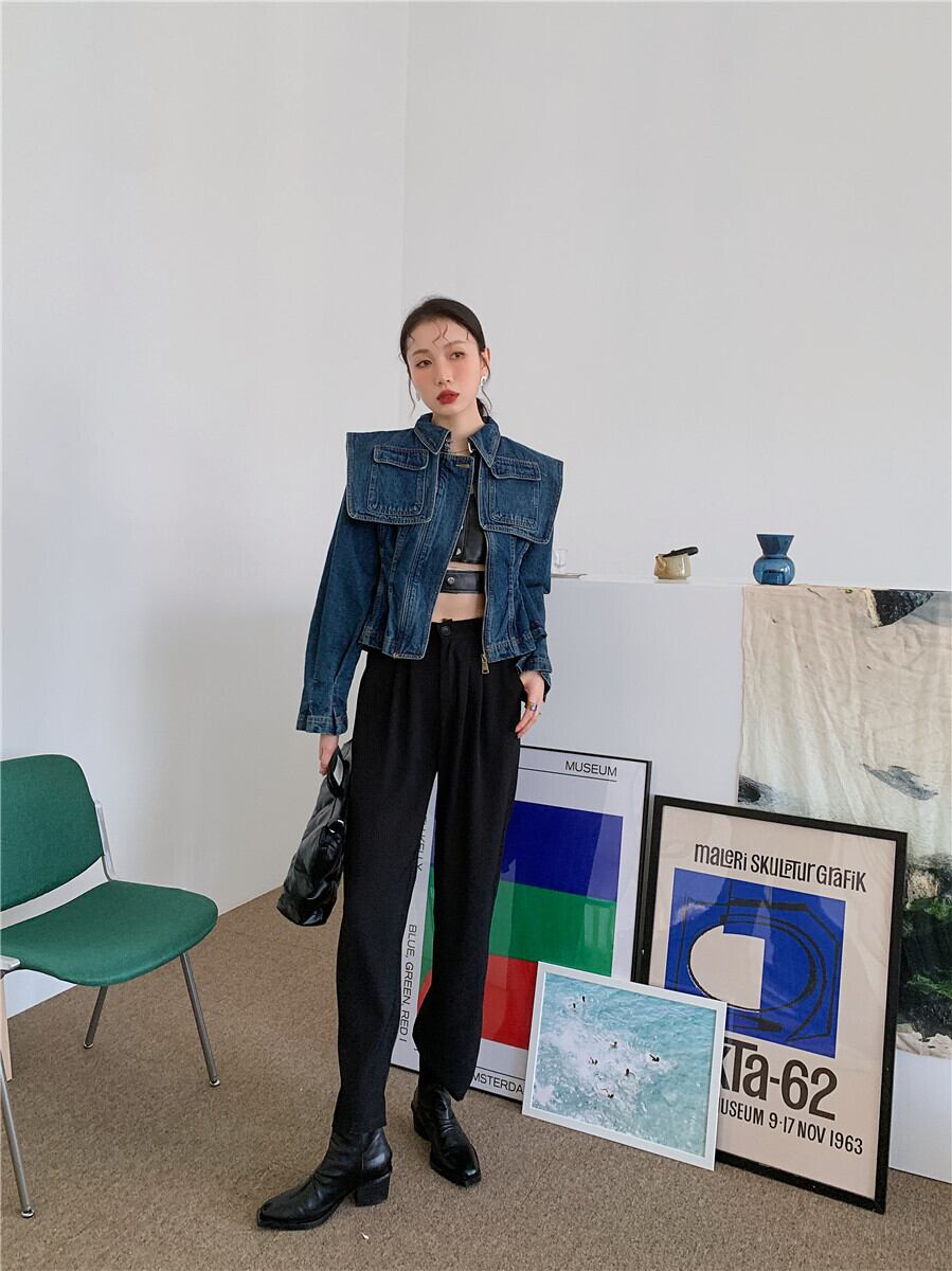 【送料無料】レディース ジャケット アウター デニムジャケット ビッグカラー 大きめ 襟 ウエスト プリーツ 大人可愛い ママコーデ ママファッション 韓国 オルチャンファッション 人気 トレンド 新作 20代 30代 40代 きれいめ レトロ シンプル お出かけ デート おしゃれ 通勤 通学 オフィス OL デイリー 普段着 ラフ カジュアル フェミニン シック ゆったり 体型カバー 着痩せ 着回し インスタ映え 春 秋 冬 CO2961