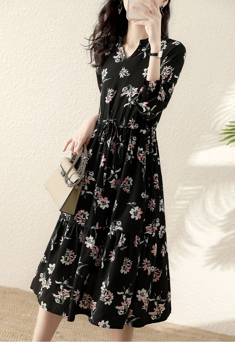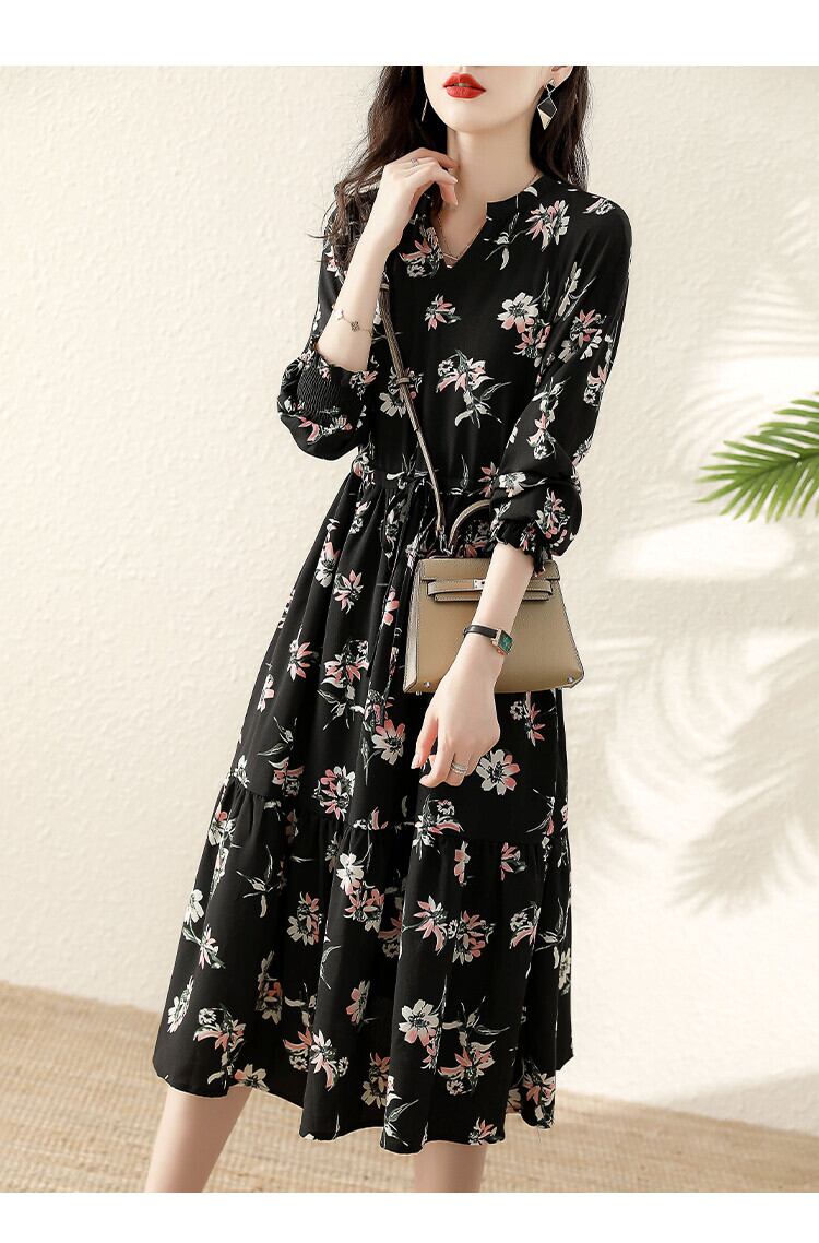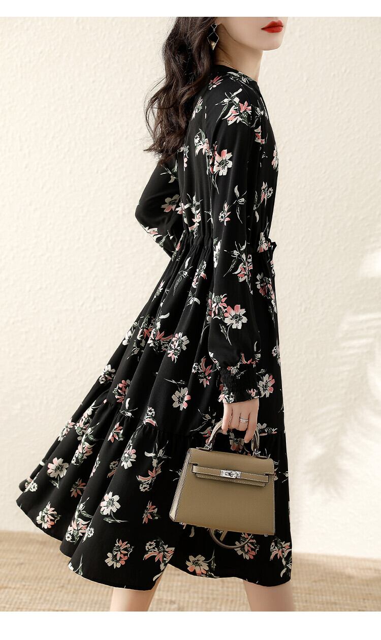 【送料無料】レディース ワンピース 花柄 Vネック 長袖 ウエストリボン ミモレ丈 大人可愛い ママコーデ ママファッション 韓国 オルチャンファッション 人気 トレンド 新作 20代 30代 40代 きれいめ レトロ シンプル お出かけ デート おしゃれ 通勤 通学 オフィス OL デイリー 普段着 ラフ カジュアル フェミニン シック ゆったり 体型カバー 着痩せ 着回し インスタ映え 春 秋 CO2964