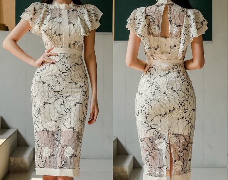 【送料無料】レディース ワンピース シアー フリル袖 半袖 花柄 膝丈 パーティー 二次会 大人可愛い ママコーデ ママファッション 韓国 オルチャンファッション 人気 トレンド 新作 20代 30代 40代 きれいめ レトロ シンプル お出かけ デート おしゃれ 通勤 通学 オフィス OL デイリー 普段着 ラフ カジュアル フェミニン シック ゆったり 体型カバー 着痩せ 着回し インスタ映え 春 夏 秋 冬 CO2965