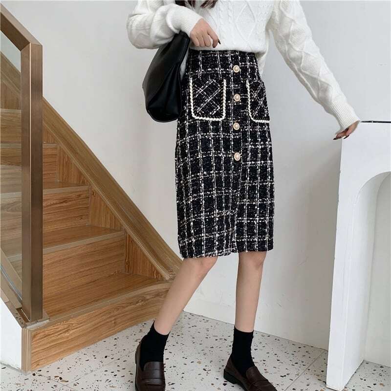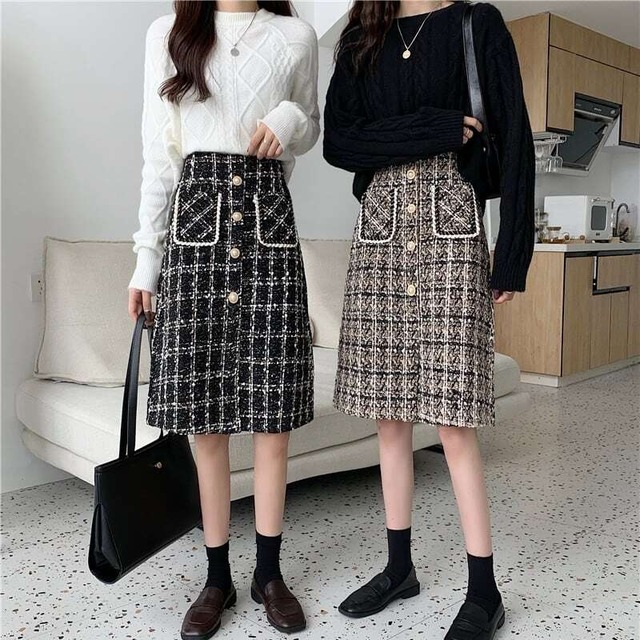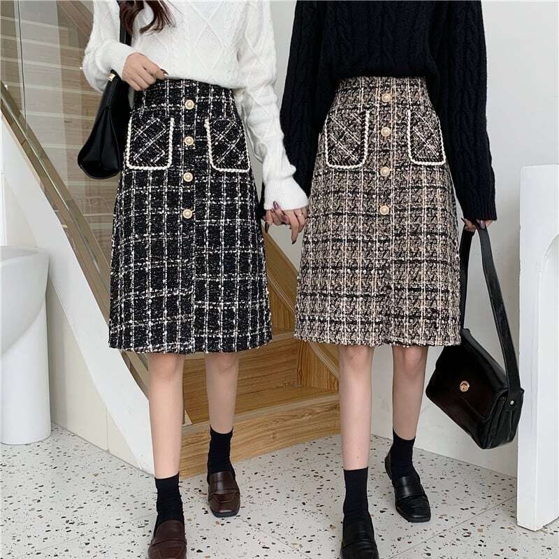 【送料無料】レディース 2カラー ツイードスカート ハイウエスト パールボタン 膝丈 ロープステッチ 大人可愛い ママコーデ ママファッション 韓国 オルチャンファッション 人気 トレンド 新作 20代 30代 40代 きれいめ レトロ シンプル お出かけ デート おしゃれ 通勤 通学 オフィス OL デイリー 普段着 ラフ カジュアル フェミニン シック ゆったり 体型カバー 着痩せ 着回し インスタ映え 秋 冬 CO2967