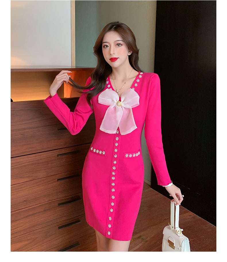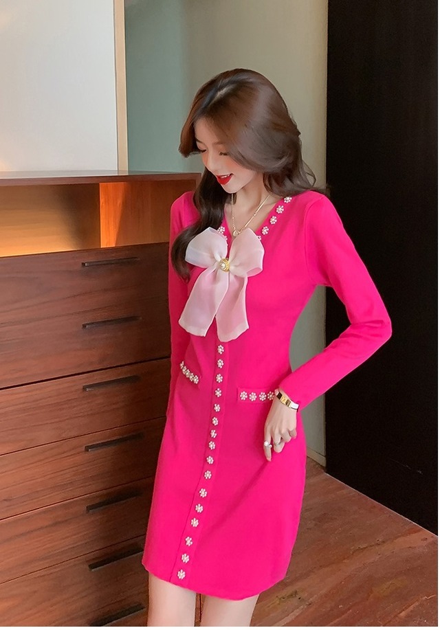 【送料無料】レディース 4カラー ワンピース ビジュー パール 長袖 膝上丈 リボン 大人可愛い ママコーデ ママファッション 韓国 オルチャンファッション 人気 トレンド 新作 20代 30代 40代 きれいめ レトロ シンプル お出かけ デート おしゃれ 通勤 通学 オフィス OL デイリー 普段着 ラフ カジュアル フェミニン シック ゆったり 体型カバー 着痩せ 着回し インスタ映え 春 秋 冬 CO2970