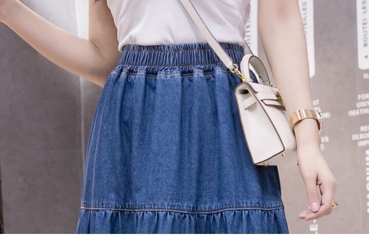 ティアードデザインが女性らしい、ロングスカートタイプのデニムスカートです。シルエットがフレアなので、体型カバーにもぴったり!さらに、大人可愛い仕上がりで、様々なシーンで活躍してくれます。