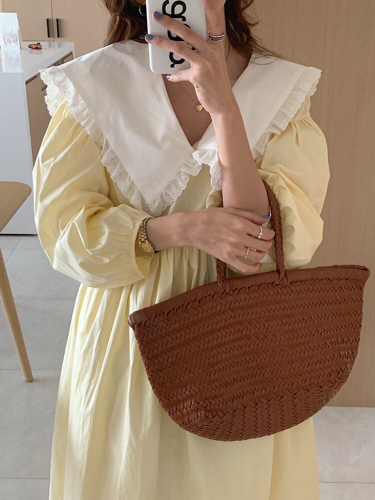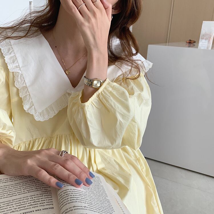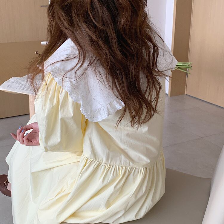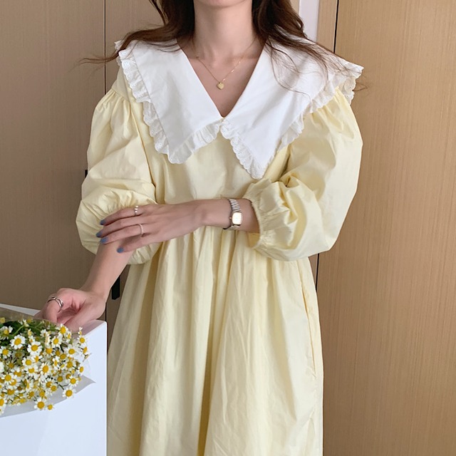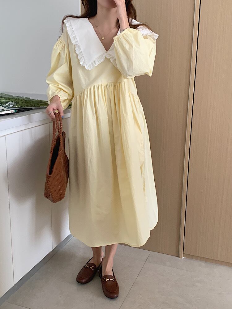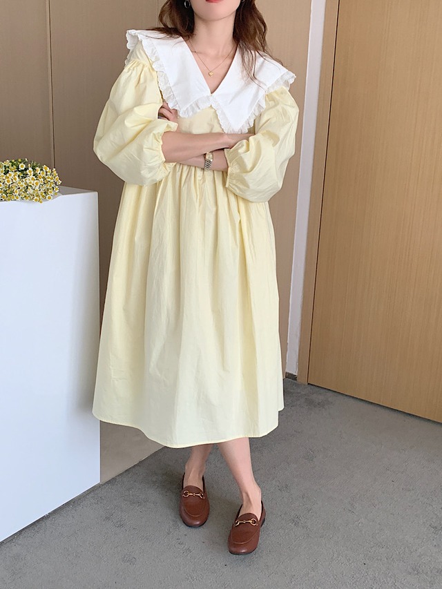 【送料無料】レディース ワンピース ビックカラー フリル バルーンスリーブ ミモレ丈 長袖 大人可愛い ママコーデ ママファッション 韓国 オルチャンファッション 人気 トレンド 新作 20代 30代 40代 きれいめ レトロ シンプル お出かけ デート おしゃれ 通勤 通学 オフィス OL デイリー 普段着 ラフ カジュアル フェミニン シック ゆったり 体型カバー 着痩せ 着回し インスタ映え 春 秋 CO2988