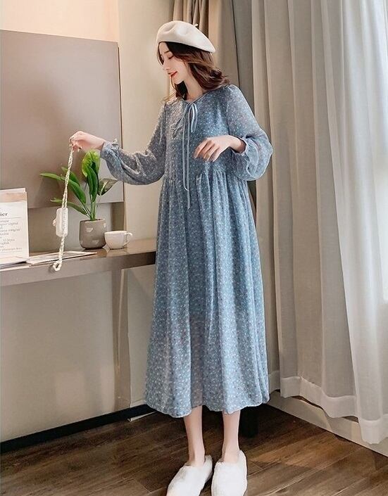 【送料無料】マタニティ ワンピース ミディ丈 ラウンドネック 花柄 シフォンワンピース リボン パフスリーブ Aライン レディース 可愛い ママコーデ ママファッション ママ服 マタニティウェア 人気 ゆったり 大きいサイズ デイリー 普段着 お出かけ おしゃれ シンプル 無地 きれいめ カジュアル フェミニン シック 体型カバー 着痩せ 着回し お宮参り マタニティフォト 通勤 妊婦服 産前 産後 秋 春 CO2783