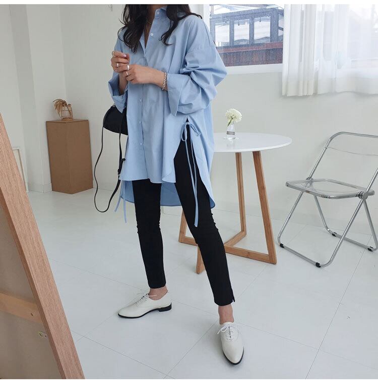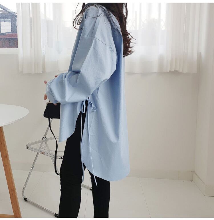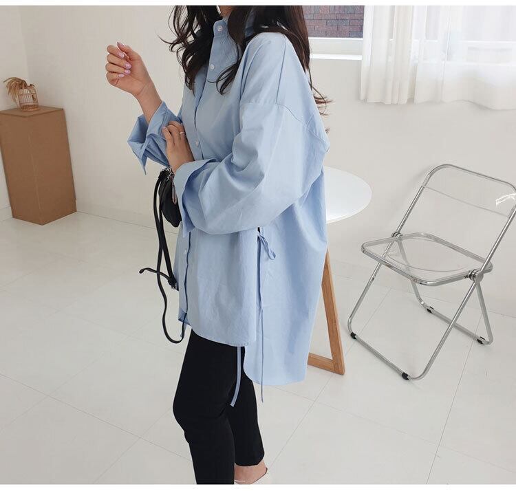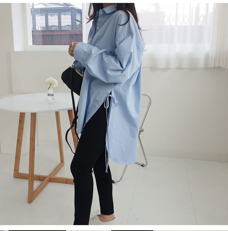 【送料無料】レディース シャツ ロング丈 サイドリボン 長袖 大人可愛い ママコーデ ママファッション 韓国 オルチャンファッション 人気 トレンド 新作 20代 30代 40代 きれいめ レトロ シンプル お出かけ デート おしゃれ 通勤 通学 オフィス OL デイリー 普段着 ラフ カジュアル フェミニン シック ゆったり 体型カバー 着痩せ 着回し インスタ映え 春 秋 CO2992