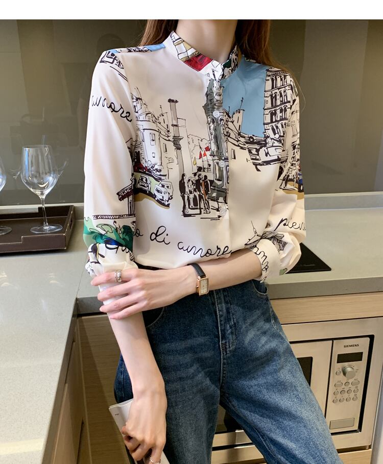 【送料無料】レディース シャツ 柄 プリント ブラウス 大人可愛い ママコーデ ママファッション 韓国 オルチャンファッション 人気 トレンド 新作 20代 30代 40代 きれいめ レトロ シンプル お出かけ デート おしゃれ 通勤 通学 オフィス OL デイリー 普段着 ラフ カジュアル フェミニン シック ゆったり 体型カバー 着痩せ 着回し インスタ映え 春 秋 CO2993