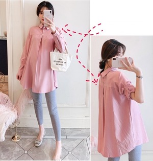 【送料無料】マタニティ トップス ロングシャツ 授乳服 前後2WAY ロールアップ 長袖 レディース 可愛い ママコーデ ママファッション ママ服 マタニティウェア 人気 ゆったり 大きいサイズ デイリー 普段着 お出かけ おしゃれ シンプル 無地 きれいめ カジュアル フェミニン シック 体型カバー 着痩せ 着回し お宮参り マタニティフォト 通勤 妊婦服 産前 産後 秋 春 CO2792