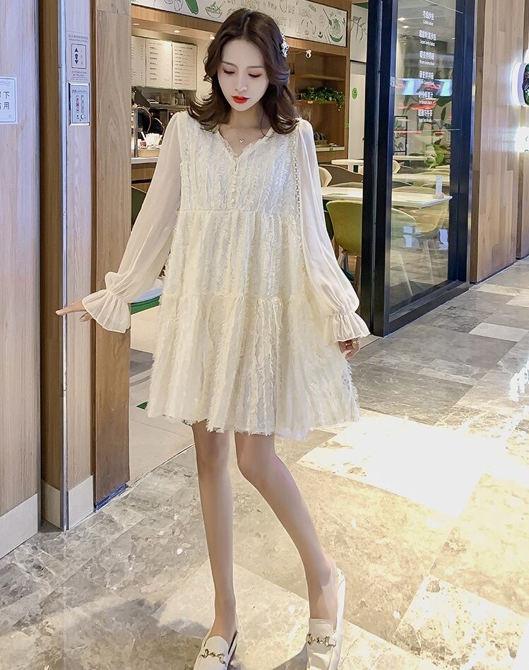 【送料無料】マタニティ ワンピース サイズ展開豊富 M~3XL Vネック 膝丈 レース シフォンワンピース お呼ばれ ドレス レディース 可愛い ママコーデ ママファッション ママ服 マタニティウェア 人気 ゆったり 大きいサイズ デイリー 普段着 お出かけ おしゃれ シンプル 無地 きれいめ カジュアル フェミニン シック 体型カバー 着痩せ 着回し お宮参り マタニティフォト 通勤 妊婦服 産前 産後 秋 春 CO2804