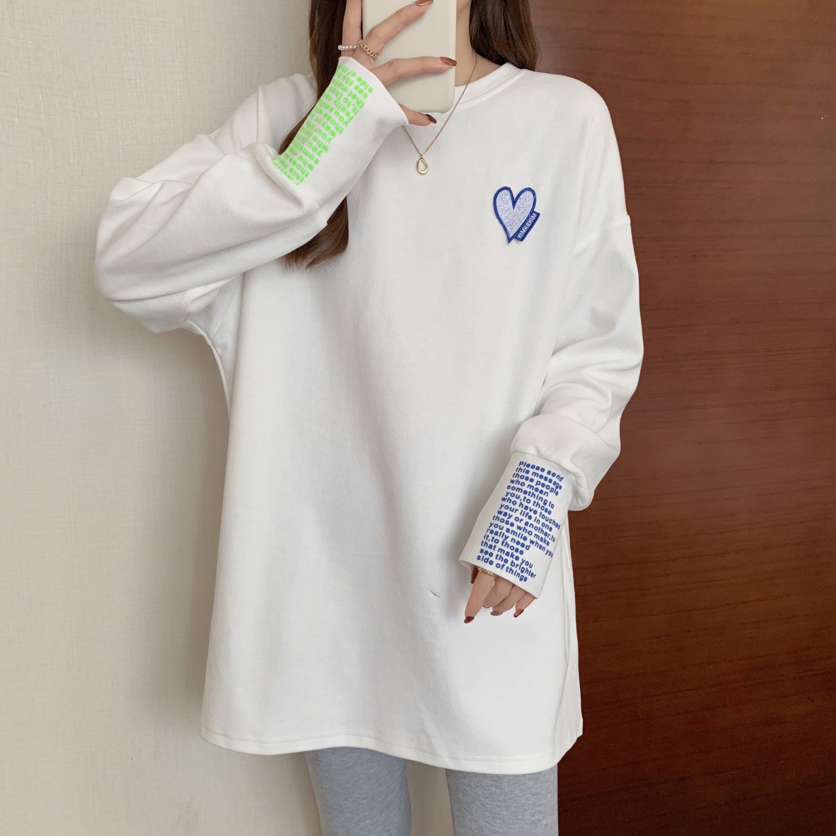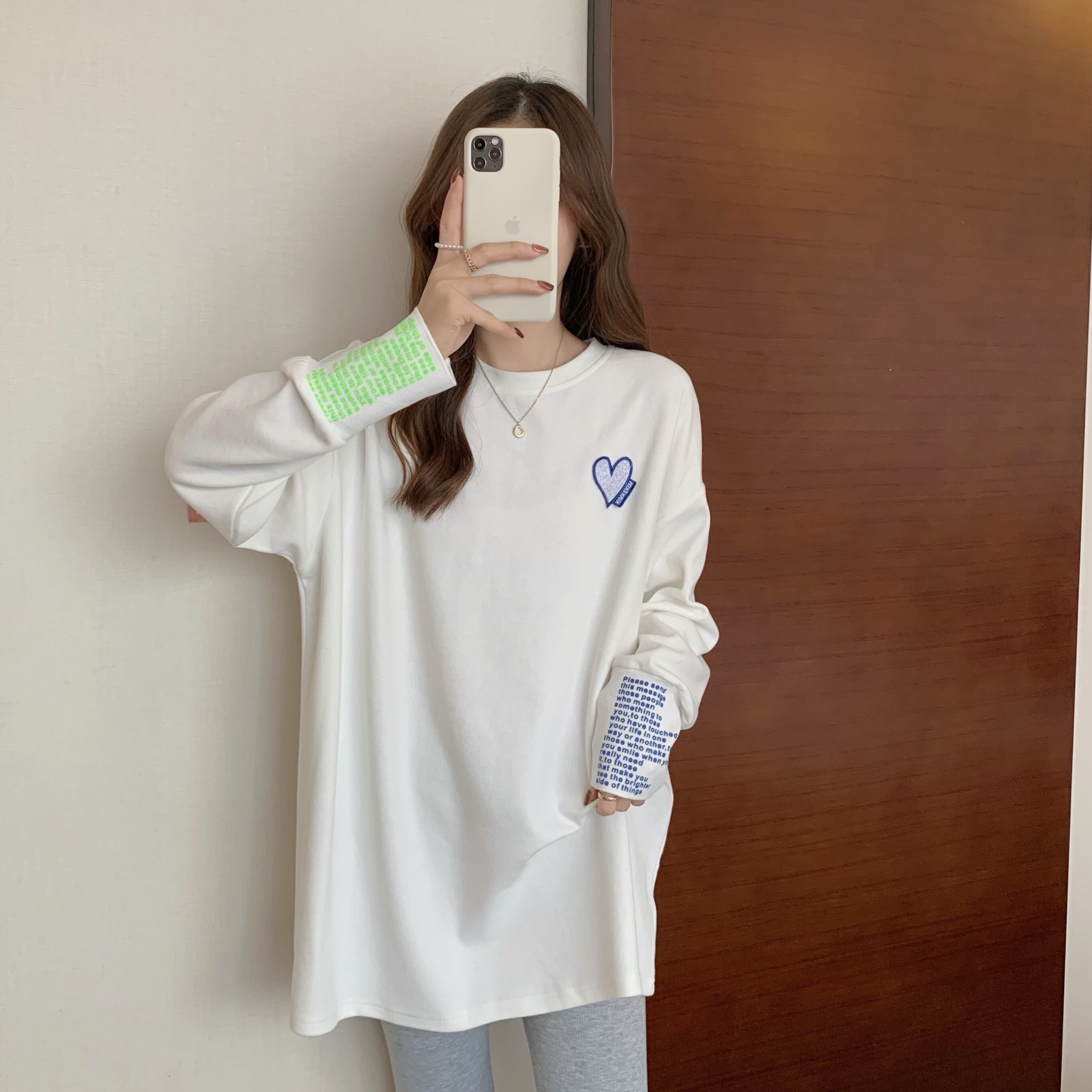【送料無料】レディース プルオーバー ロング丈 トップス ワンポイント ハート 英字柄 プリント 長袖 ホワイト 大人可愛い ママコーデ ママファッション 韓国 オルチャンファッション 人気 トレンド 新作 20代 30代 40代 きれいめ レトロ シンプル お出かけ デート おしゃれ 通勤 通学 オフィス OL デイリー 普段着 ラフ カジュアル フェミニン シック ゆったり 体型カバー 着痩せ 着回し インスタ映え 春 秋 冬 CO3009