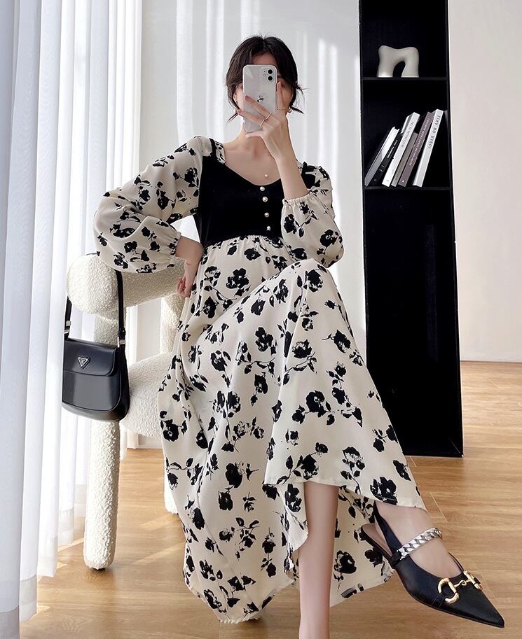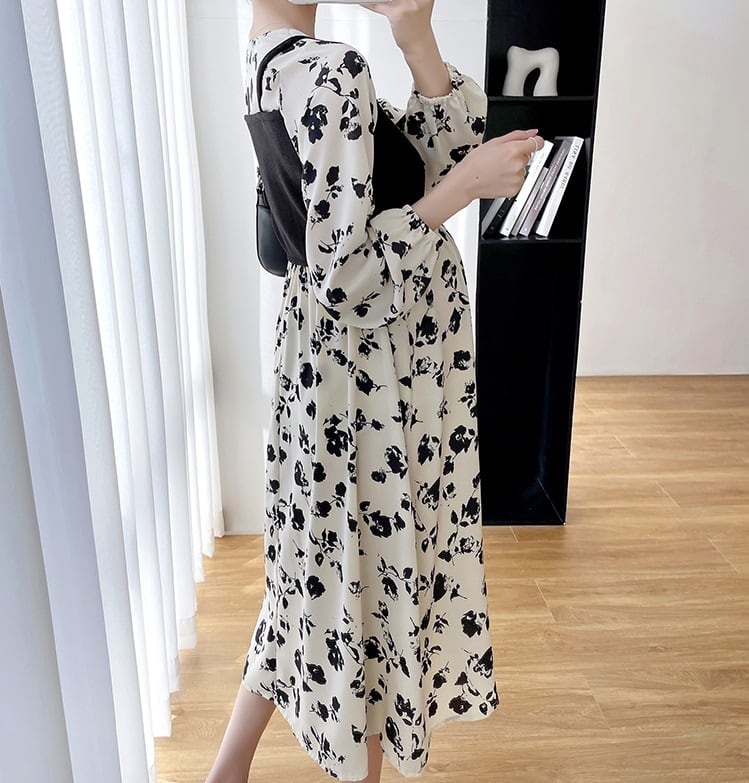 【送料無料】マタニティ ワンピース 花柄 スクエアネック ハイウエスト パフスリーブ Aライン レイヤード風 レディース 可愛い ママコーデ ママファッション ママ服 マタニティウェア 人気 ゆったり 大きいサイズ デイリー 普段着 お出かけ おしゃれ シンプル 無地 きれいめ カジュアル フェミニン シック 体型カバー 着痩せ 着回し お宮参り マタニティフォト 通勤 妊婦服 産前 産後 秋 春 CO2809