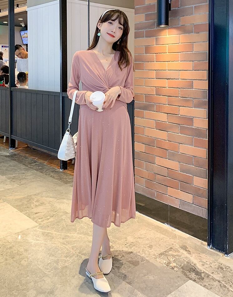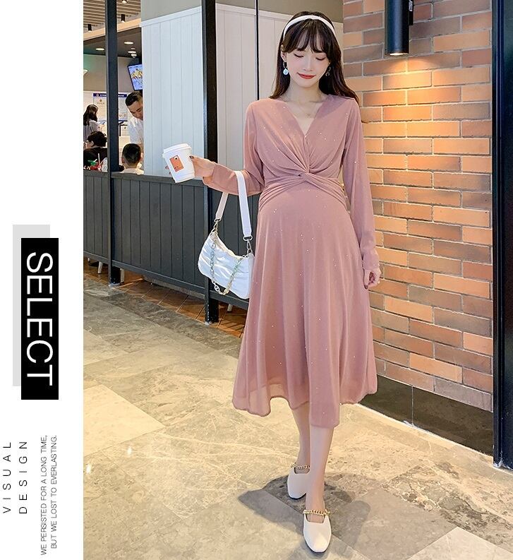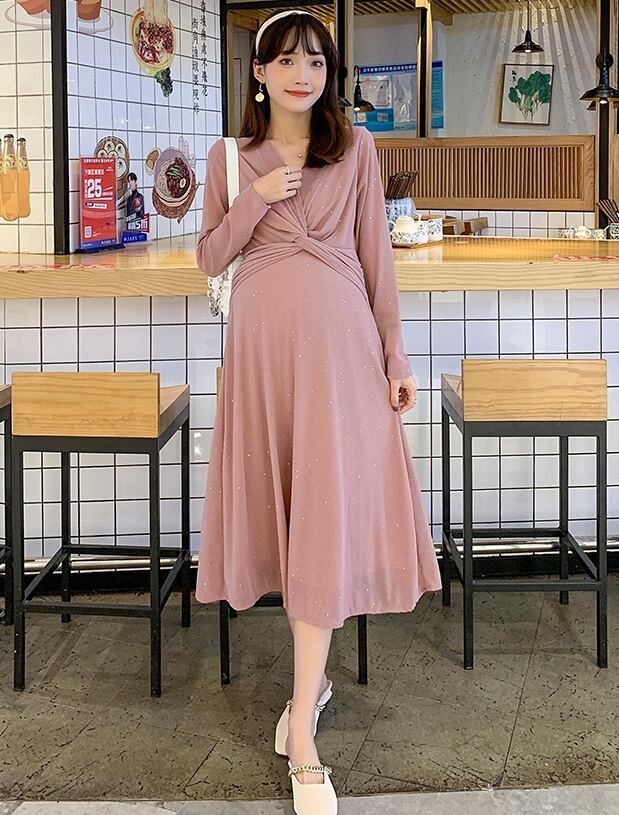 【送料無料】マタニティ ワンピース ツイスト 授乳服 ラメ入り Vネック 長袖 レディース 可愛い ママコーデ ママファッション ママ服 マタニティウェア 人気 ゆったり 大きいサイズ デイリー 普段着 お出かけ おしゃれ シンプル 無地 きれいめ カジュアル フェミニン シック 体型カバー 着痩せ 着回し お宮参り マタニティフォト 通勤 妊婦服 産前 産後 秋 春 CO2811
