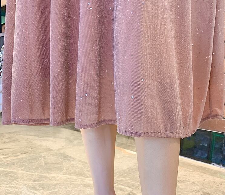 ラメ混の素材できちんとした場にも、好印象を残せるデザインのワンピース。