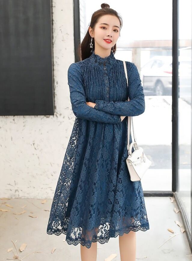 【送料無料】マタニティ ワンピース サイズ展開豊富 M~3XL ミディ丈 レース Aラインワンピース ハーフボタン レディース 可愛い ママコーデ ママファッション ママ服 マタニティウェア 人気 ゆったり 大きいサイズ デイリー 普段着 お出かけ おしゃれ シンプル 無地 きれいめ カジュアル フェミニン シック 体型カバー 着痩せ 着回し お宮参り マタニティフォト 通勤 妊婦服 授乳服 産前 産後 秋 春 CO2813