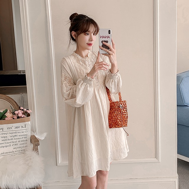 【送料無料】マタニティ ワンピース サイズ展開豊富 M~4XL ボリュームスリーブ ハイネック Aライン シャーリング パール レディース 可愛い ママコーデ ママファッション ママ服 マタニティウェア 人気 ゆったり 大きいサイズ デイリー 普段着 お出かけ おしゃれ シンプル 無地 きれいめ カジュアル フェミニン シック 体型カバー 着痩せ 着回し お宮参り マタニティフォト 通勤 妊婦服 産前 産後 秋 春 CO2818