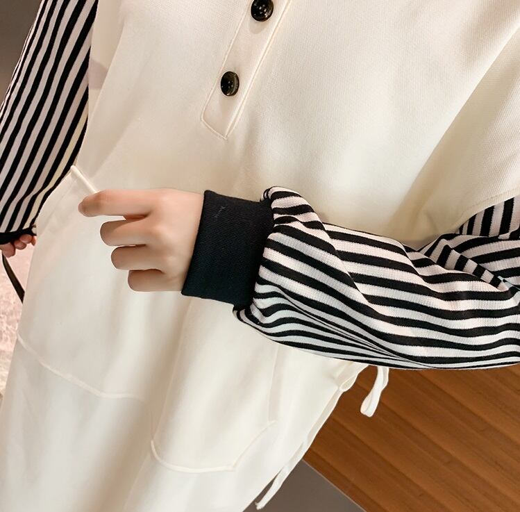 フロントに大きめのカンガルーポケットが付いたバイカラーワンピース。