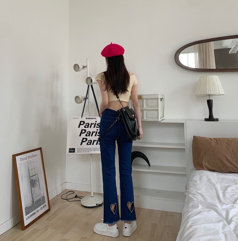 【送料無料】レディース デニムパンツ ハートマーク ハートカット フリンジ ブーツカット 大人可愛い ママコーデ ママファッション 韓国 オルチャンファッション 人気 トレンド 新作 20代 30代 40代 きれいめ レトロ シンプル お出かけ デート おしゃれ 通勤 通学 オフィス OL デイリー 普段着 ラフ カジュアル フェミニン シック ゆったり 体型カバー 着痩せ 着回し インスタ映え 春 夏 秋 冬 CO3021