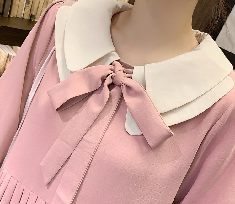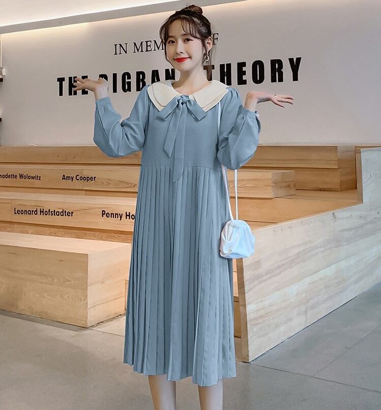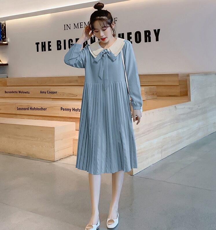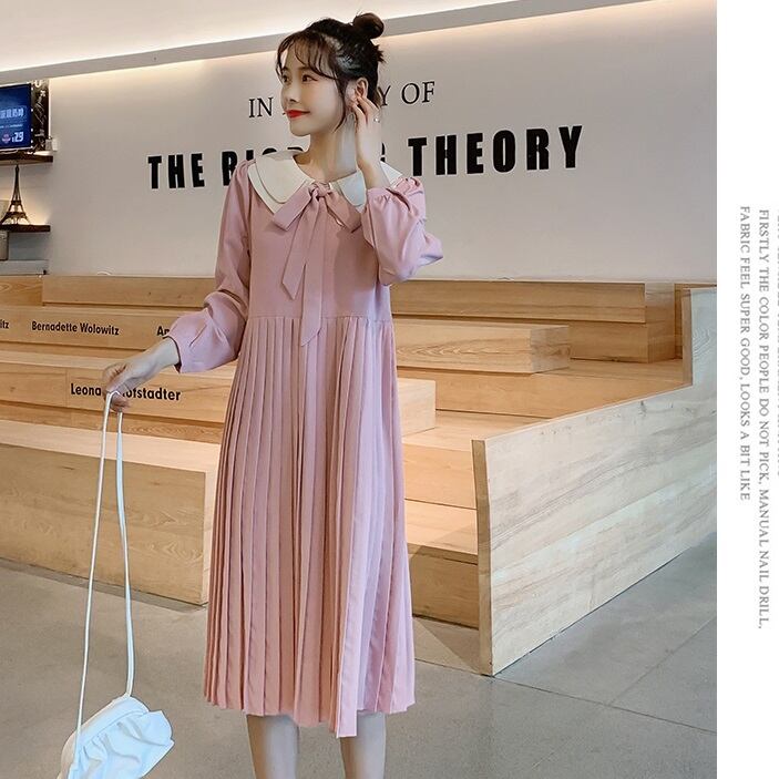 【送料無料】マタニティ ワンピース リボンタイ 襟付き パフスリーブ プリーツ 膝丈 レディース 可愛い ママコーデ ママファッション ママ服 マタニティウェア 人気 ゆったり 大きいサイズ デイリー 普段着 お出かけ おしゃれ シンプル 無地 きれいめ カジュアル フェミニン シック 体型カバー 着痩せ 着回し お宮参り マタニティフォト 通勤 妊婦服 産前 産後 秋 春 CO2837