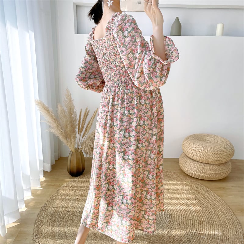 【送料無料】マタニティ ワンピース シャーリング 花柄 フラワー キャンディースリーブ スクエアネック レディース 可愛い ママコーデ ママファッション ママ服 マタニティウェア 人気 ゆったり 大きいサイズ デイリー 普段着 お出かけ おしゃれ シンプル 無地 きれいめ カジュアル フェミニン シック 体型カバー 着痩せ 着回し お宮参り マタニティフォト 通勤 妊婦服 産前 産後 秋 春 CO2839