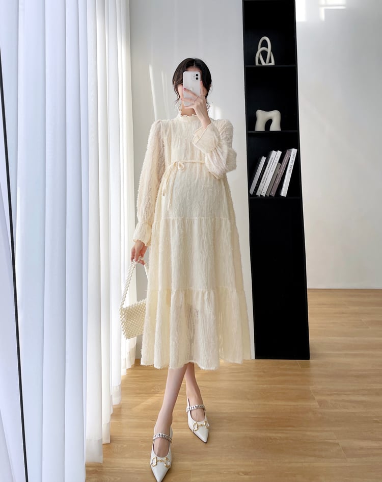【送料無料】マタニティ ワンピース ハイネック フリル ティアード キャンディースリーブ ウエストリボン レディース 可愛い ママコーデ ママファッション ママ服 マタニティウェア 人気 ゆったり 大きいサイズ デイリー 普段着 お出かけ おしゃれ シンプル 無地 きれいめ カジュアル フェミニン シック 体型カバー 着痩せ 着回し お宮参り マタニティフォト 通勤 妊婦服 産前 産後 秋 春 CO2846