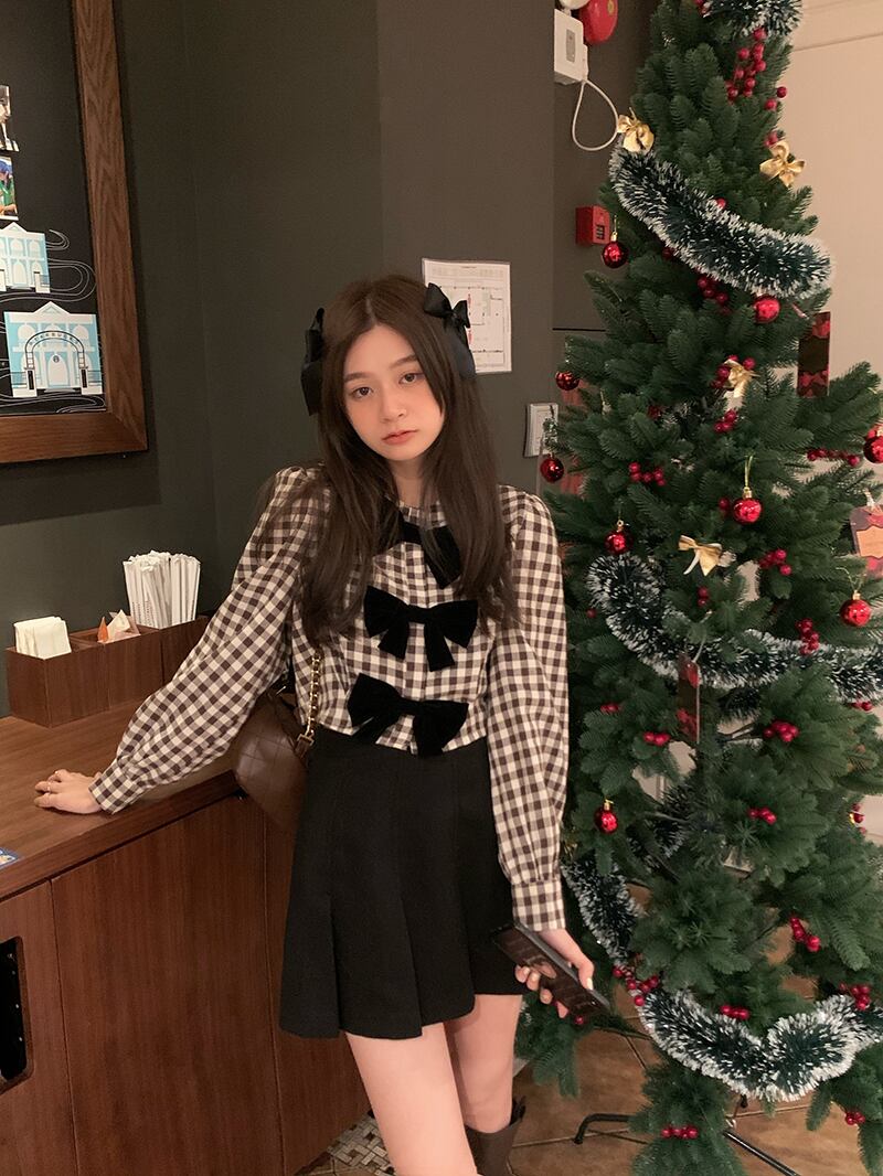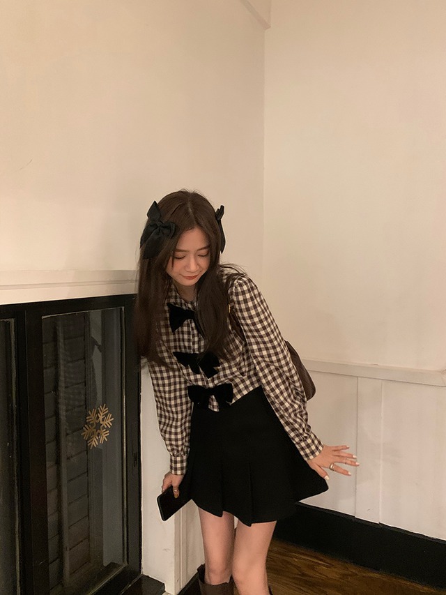 ガーリーなチェック柄にリボンで可愛いが詰まったブラウス♪