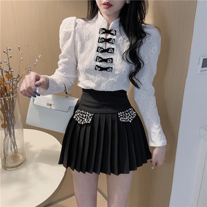 【送料無料】レディース セットアップ トップス リボン レース パフスリーブ 長袖 ビジュー ミニスカート プリーツ ミニ丈 大人可愛い ママコーデ ママファッション 韓国 オルチャンファッション 人気 トレンド 新作 20代 30代 40代 きれいめ レトロ シンプル お出かけ デート おしゃれ 通勤 通学 オフィス OL デイリー 普段着 ラフ カジュアル フェミニン シック 着痩せ 着回し インスタ映え 春 秋 冬 CO3148