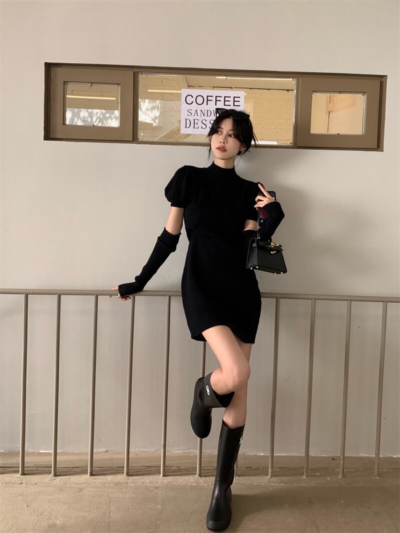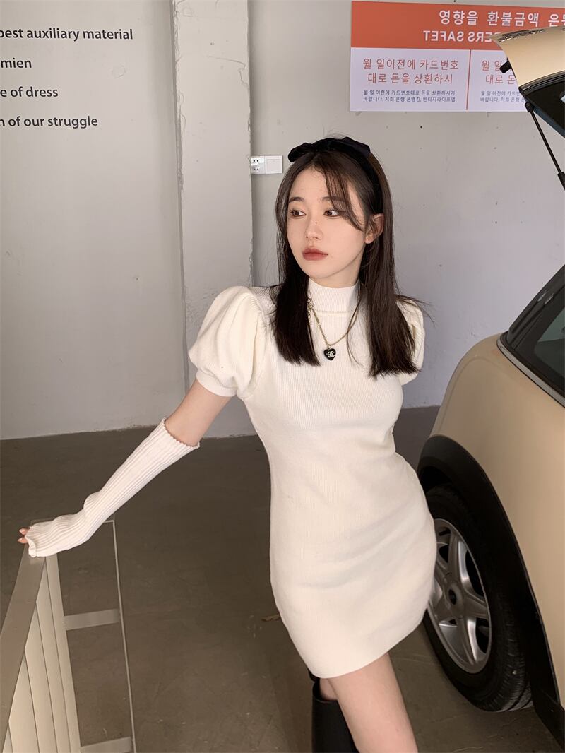 【送料無料】レディース 4カラー ワンピース ミニ丈 パフスリーブ 半袖 アームウォーマー ハイネック スタンドカラー ミニワンピース 大人可愛い ママコーデ ママファッション 韓国 オルチャンファッション 人気 トレンド 新作 20代 30代 40代 きれいめ レトロ シンプル お出かけ デート おしゃれ 通勤 通学 オフィス OL デイリー 普段着 ラフ カジュアル フェミニン シック ゆったり 体型カバー 着痩せ 着回し インスタ映え 秋 冬 CO3153