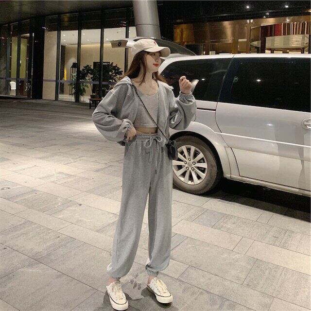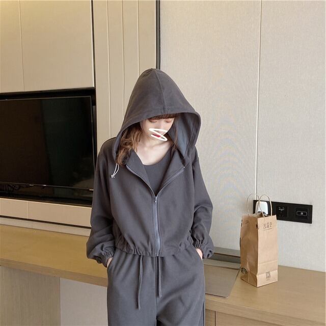 【送料無料】レディース 2カラー セットアップ 3点セット パーカー キャミ パンツ スウェット フーディー ジップパーカー 長袖 キャミソール ショート丈 クロップド ボトムス パンツ ジョガーパンツ ウエストゴム ハイウエスト 大人可愛い ママコーデ ママファッション 韓国 オルチャンファッション 人気 トレンド 新作 20代 30代 40代 きれいめ レトロ シンプル お出かけ 通学 OL デイリー 普段着 ラフ カジュアル ゆったり 体型カバー 着回し インスタ映え 春 秋 冬 CO3156
