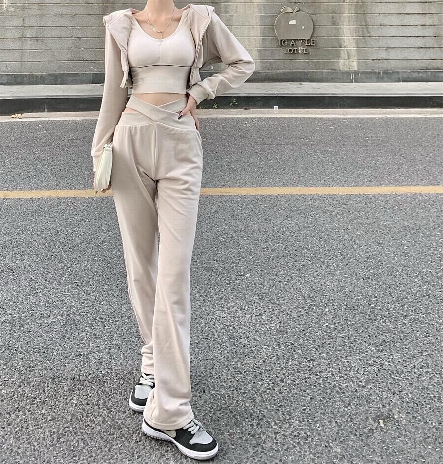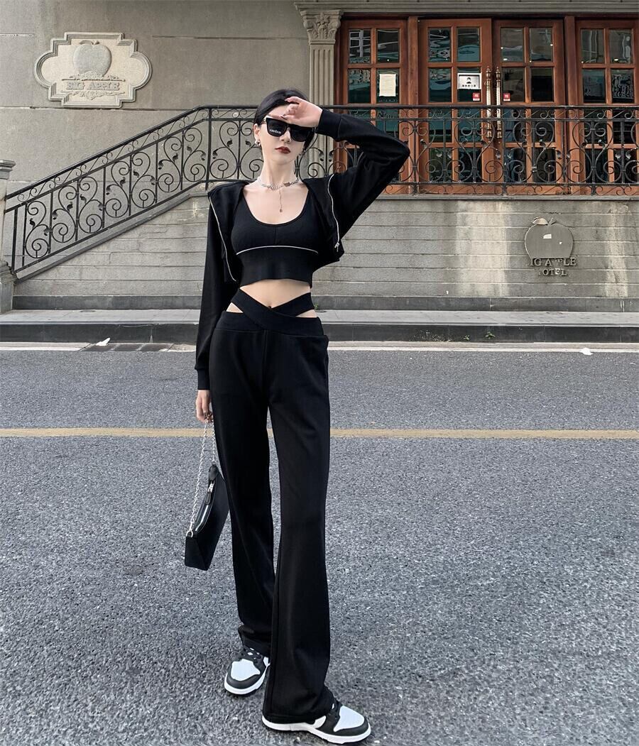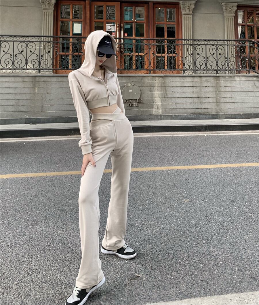 【送料無料】レディース 2カラー セットアップ 2点セット パーカー パンツ ジップアップ フーディー 長袖 ショート丈 クロップド ロングパンツ フルレングス ストレートパンツ クロス カットアウト 大人可愛い ママコーデ ママファッション 韓国 オルチャンファッション 人気 トレンド 新作 20代 30代 40代 きれいめ レトロ シンプル お出かけ デート おしゃれ 通学 OL デイリー 普段着 ラフ カジュアル ゆったり 体型カバー 着痩せ 着回し インスタ映え 春 秋 冬 CO3157
