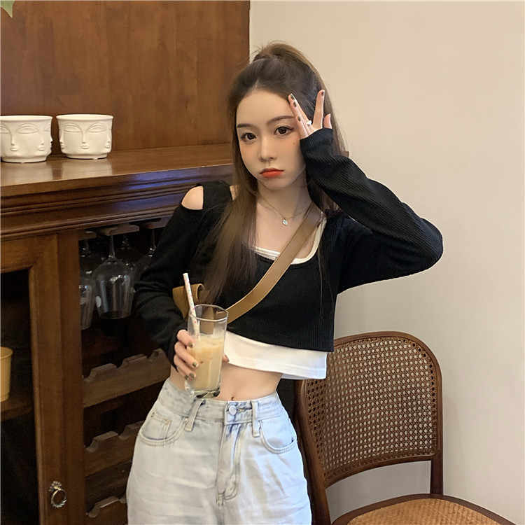 【送料無料】レディース 3カラー プルオーバー クロップド丈 レイヤード リブ ロングTシャツ 長袖 カットアウト 大人可愛い ママコーデ ママファッション 韓国 オルチャンファッション 人気 トレンド 新作 20代 30代 40代 きれいめ レトロ シンプル お出かけ デート おしゃれ 通学 OL デイリー 普段着 ラフ カジュアル ゆったり 体型カバー 着痩せ 着回し インスタ映え 春 秋 CO3164