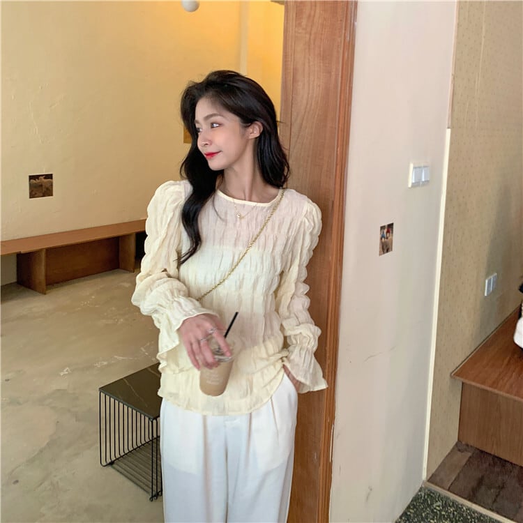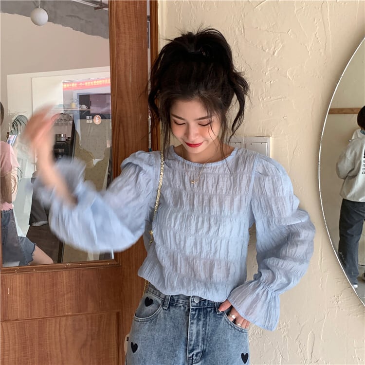 ワッシャー加工のふんわりシルエットブラウスは女性らしさアップ♡