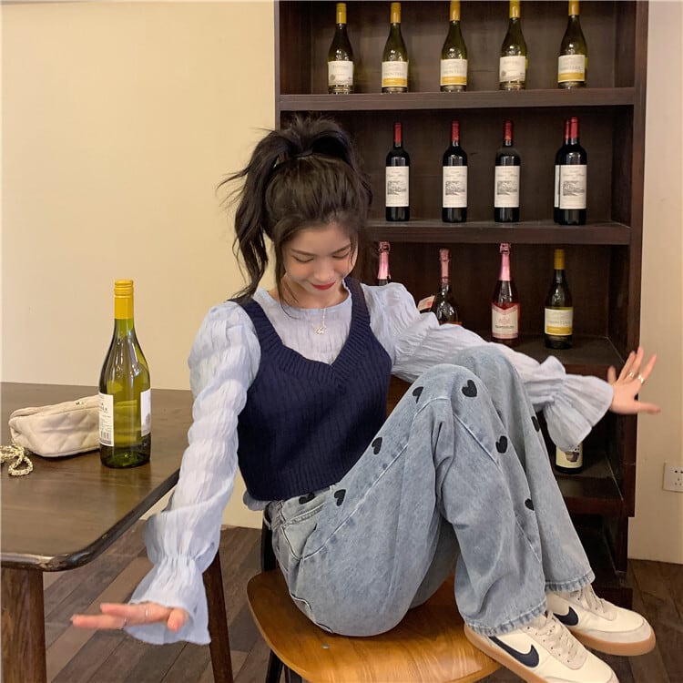 【送料無料】レディース 2点セット トップス ブラウス ワッシャー キャンディスリーブ フレア ビスチェ ベスト ショート丈 大人可愛い ママコーデ ママファッション 韓国 オルチャンファッション 人気 トレンド 新作 20代 30代 40代 きれいめ レトロ シンプル お出かけ デート おしゃれ 通勤 通学 オフィス OL デイリー 普段着 ラフ カジュアル フェミニン シック ゆったり 体型カバー 着痩せ 着回し インスタ映え 春 秋 冬 CO3179