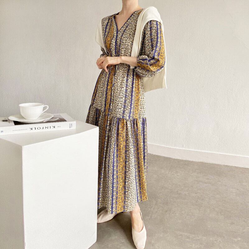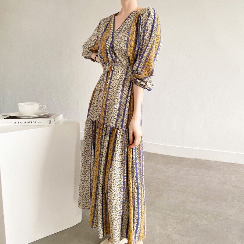 【送料無料】レディース 2カラー ワンピース 花柄 総柄 Vネック ロング丈 マキシ丈 ウエストリボン 切り替え フレア 大人可愛い ママコーデ ママファッション 韓国 オルチャンファッション 人気 トレンド 新作 20代 30代 40代 きれいめ レトロ シンプル お出かけ デート おしゃれ 通勤 通学 オフィス OL デイリー 普段着 ラフ カジュアル フェミニン シック ゆったり 体型カバー 着痩せ 着回し インスタ映え 春 秋 CO3186