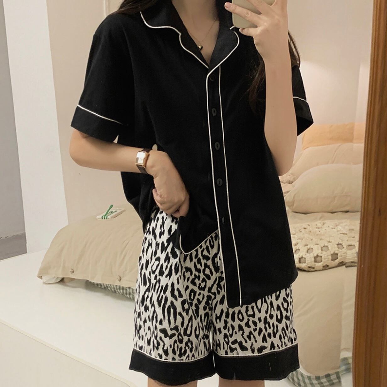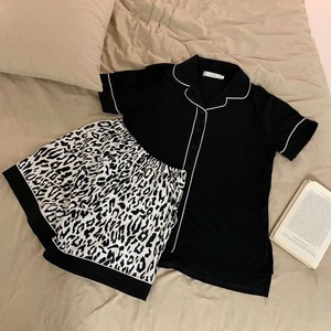 【送料無料】レディース パジャマ ヒョウ 開襟 ナイトウェア リラックスウェア 半袖 半ズボン モノトーン 大人可愛い ママコーデ ママファッション 韓国 オルチャンファッション 人気 トレンド 新作 20代 30代 40代 ルームウェア セットアップ 2点セット 2ピース ツーピース 上下セット 部屋着 寝巻き おうち時間 家着 ステイホーム おしゃれ カジュアル 可愛い キュート リラックス お泊り 旅行 シンプル 無地 ゆったり デイリー 普段使い 春 夏 CO3037