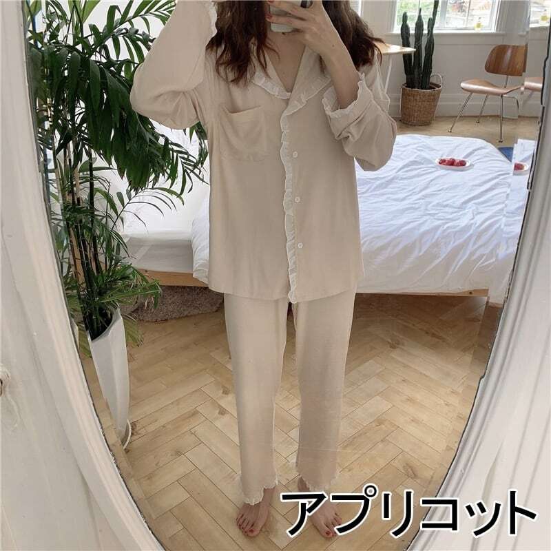 【送料無料】レディース パジャマ レース フリル Vネック 長袖 大人可愛い ママコーデ ママファッション 韓国 オルチャンファッション 人気 トレンド 新作 20代 30代 40代 ルームウェア セットアップ 2点セット 2ピース ツーピース 上下セット 部屋着 寝巻き おうち時間 家着 ステイホーム おしゃれ カジュアル 可愛い キュート リラックス お泊り 旅行 シンプル 無地 ゆったり デイリー 普段使い 秋 春 夏 CO3042