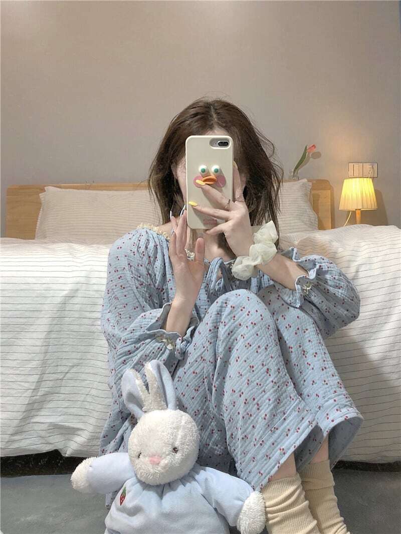 【送料無料】レディース パジャマ チェリー柄 フリル レース リボン キャンディースリーブ 大人可愛い ママコーデ ママファッション 韓国 オルチャンファッション 人気 トレンド 新作 20代 30代 40代 ルームウェア セットアップ 2点セット 2ピース ツーピース 上下セット 部屋着 寝巻き おうち時間 家着 ステイホーム おしゃれ カジュアル 可愛い キュート リラックス お泊り 旅行 シンプル 無地 ゆったり デイリー 普段使い 秋 春 夏 CO3045