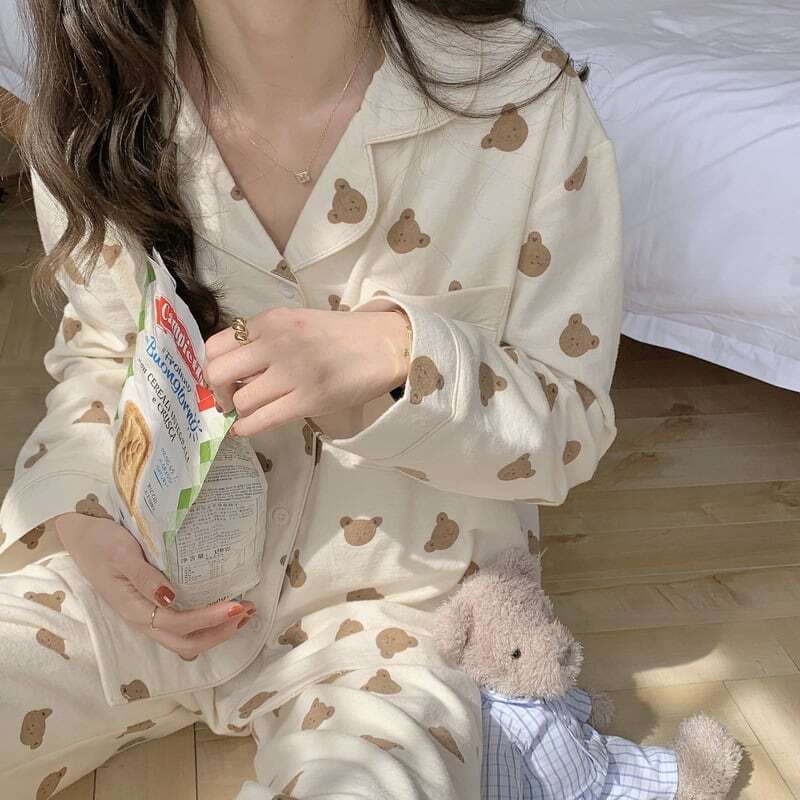 【送料無料】レディース パジャマ くま柄 アニマル柄 プリント Vネック ガーリー 大人可愛い ママコーデ ママファッション 韓国 オルチャンファッション 人気 トレンド 新作 20代 30代 40代 ルームウェア セットアップ 2点セット 2ピース ツーピース 上下セット 部屋着 寝巻き おうち時間 家着 ステイホーム おしゃれ カジュアル 可愛い キュート リラックス お泊り 旅行 シンプル 無地 ゆったり デイリー 普段使い 秋 春 夏 CO3047