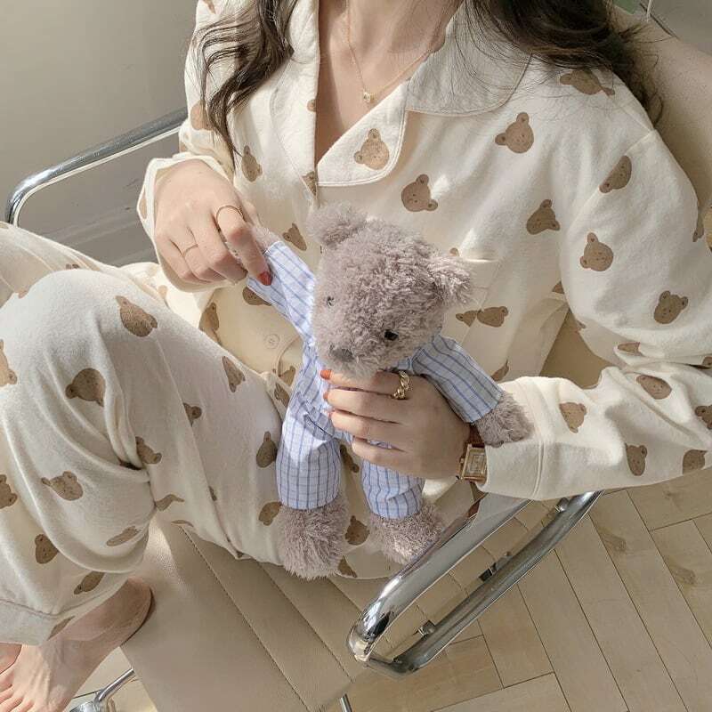 定番の襟付きデザインにくま柄が可愛いパジャマ。