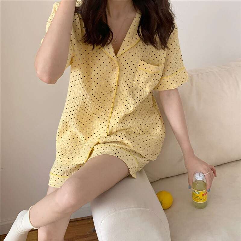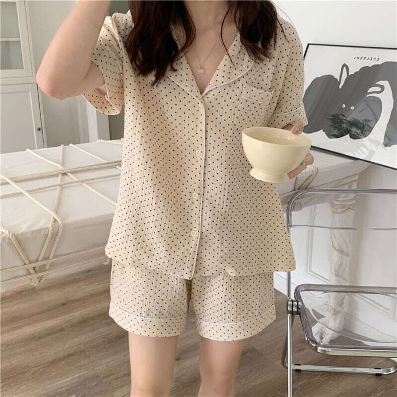 【送料無料】レディース パジャマ ドット柄 水玉 可愛い ガーリー ショートパンツ 半袖 ナイトウェア 大人可愛い ママコーデ ママファッション 韓国 オルチャンファッション 人気 トレンド 新作 20代 30代 40代 ルームウェア セットアップ 2点セット 2ピース ツーピース 上下セット 部屋着 寝巻き おうち時間 家着 ステイホーム おしゃれ カジュアル 可愛い キュート リラックス お泊り 旅行 シンプル 無地 ゆったり デイリー 普段使い 春 夏 CO3055