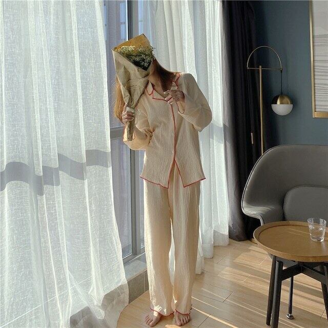 【送料無料】レディース パジャマ ストライプ Vネック パイピング 長袖 パンツ 大人可愛い ママコーデ ママファッション 韓国 オルチャンファッション 人気 トレンド 新作 20代 30代 40代 ルームウェア セットアップ 2点セット 2ピース ツーピース 上下セット 部屋着 寝巻き おうち時間 家着 ステイホーム おしゃれ カジュアル 可愛い キュート リラックス お泊り 旅行 シンプル 無地 ゆったり デイリー 普段使い 秋 春 夏 CO3062